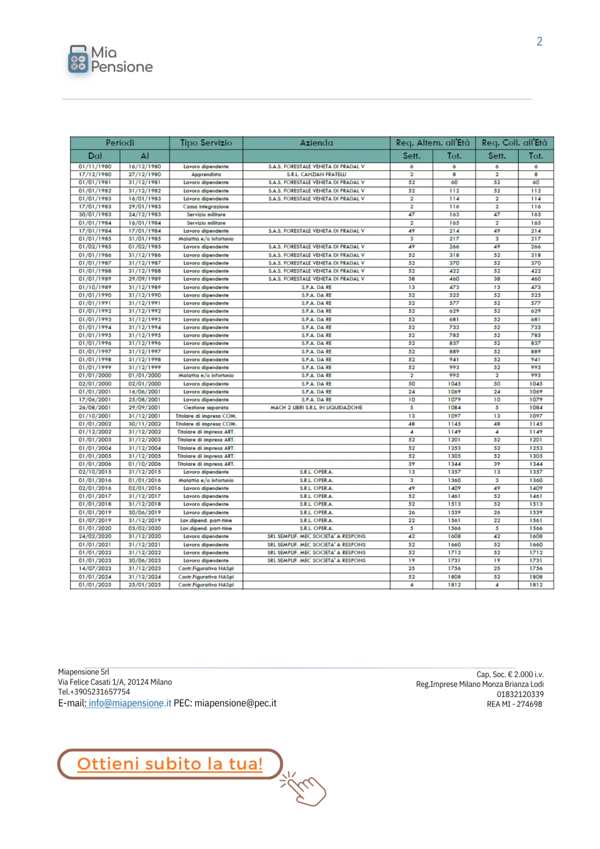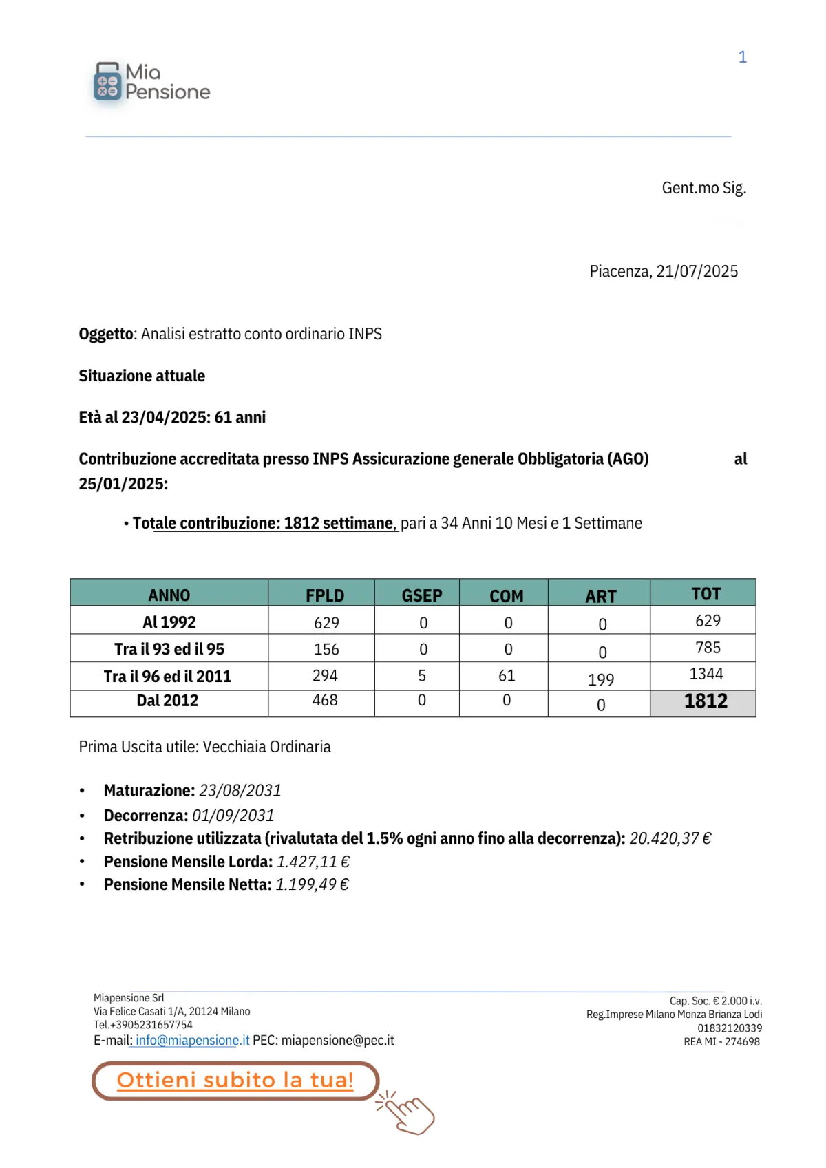 Riceverai la tua analisi previdenziale completa e personalizzata.