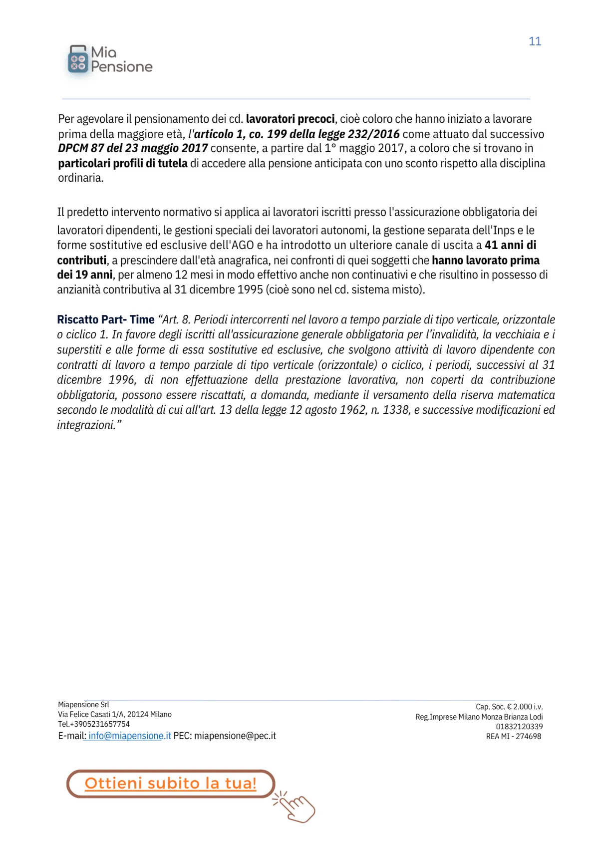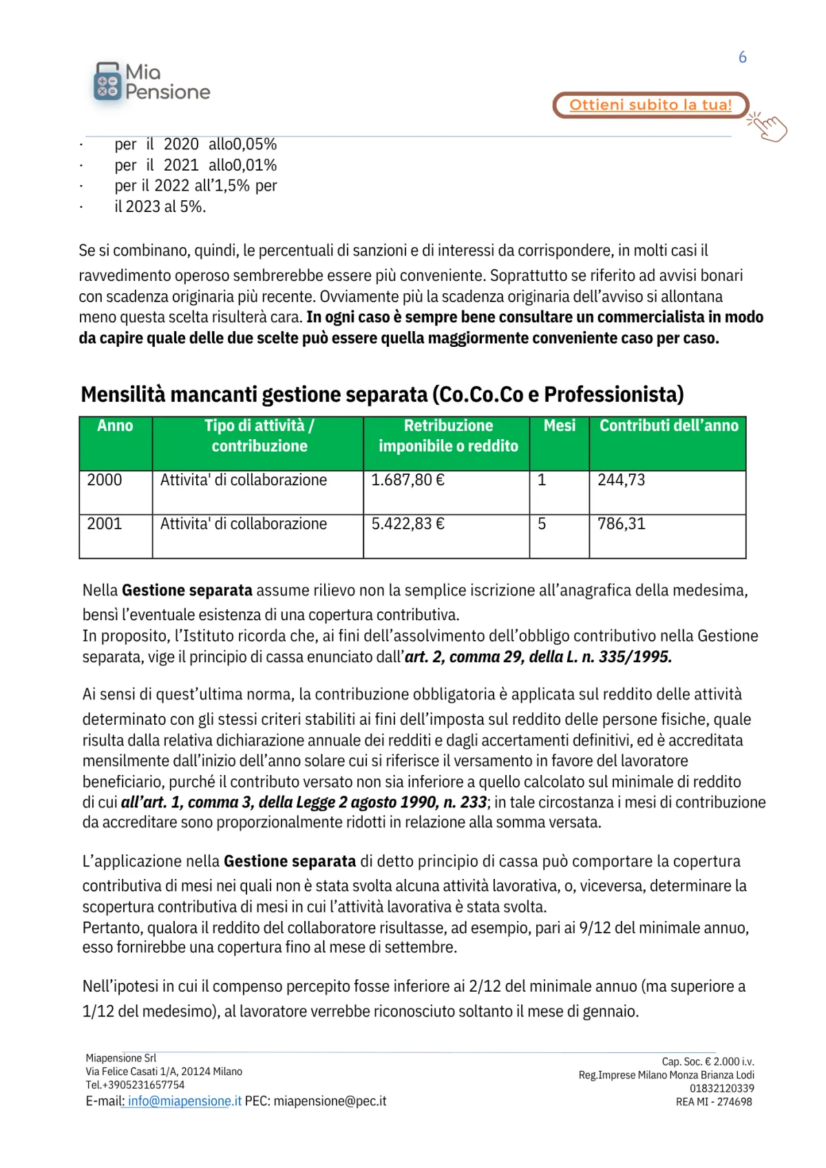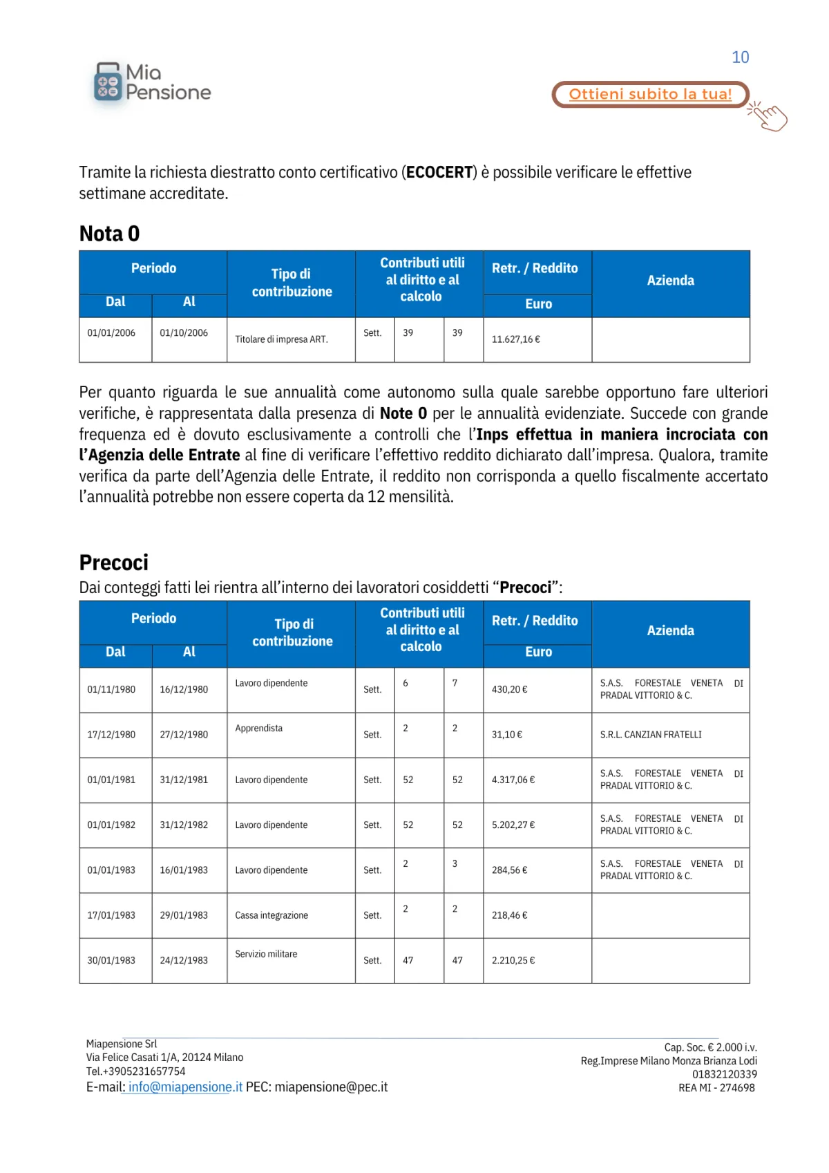 INCLUSO: 1 sessione di confronto di 60 minuti con un esperto previdenziale!