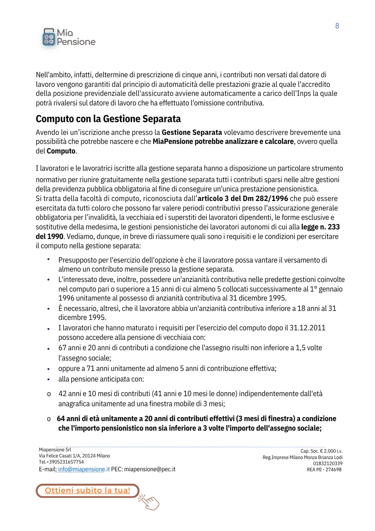 Perché affidarsi a MiaPensione?