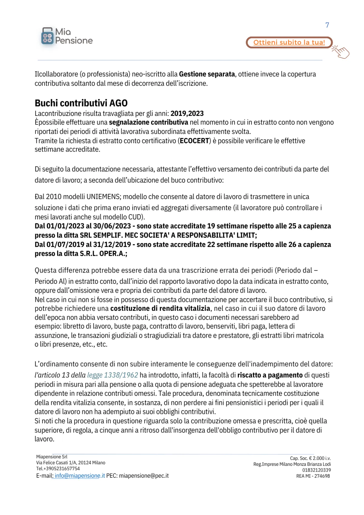 Risolvi situazioni distorte nel tuo estratto conto→ che potrebbero penalizzarti al momento della pensione.